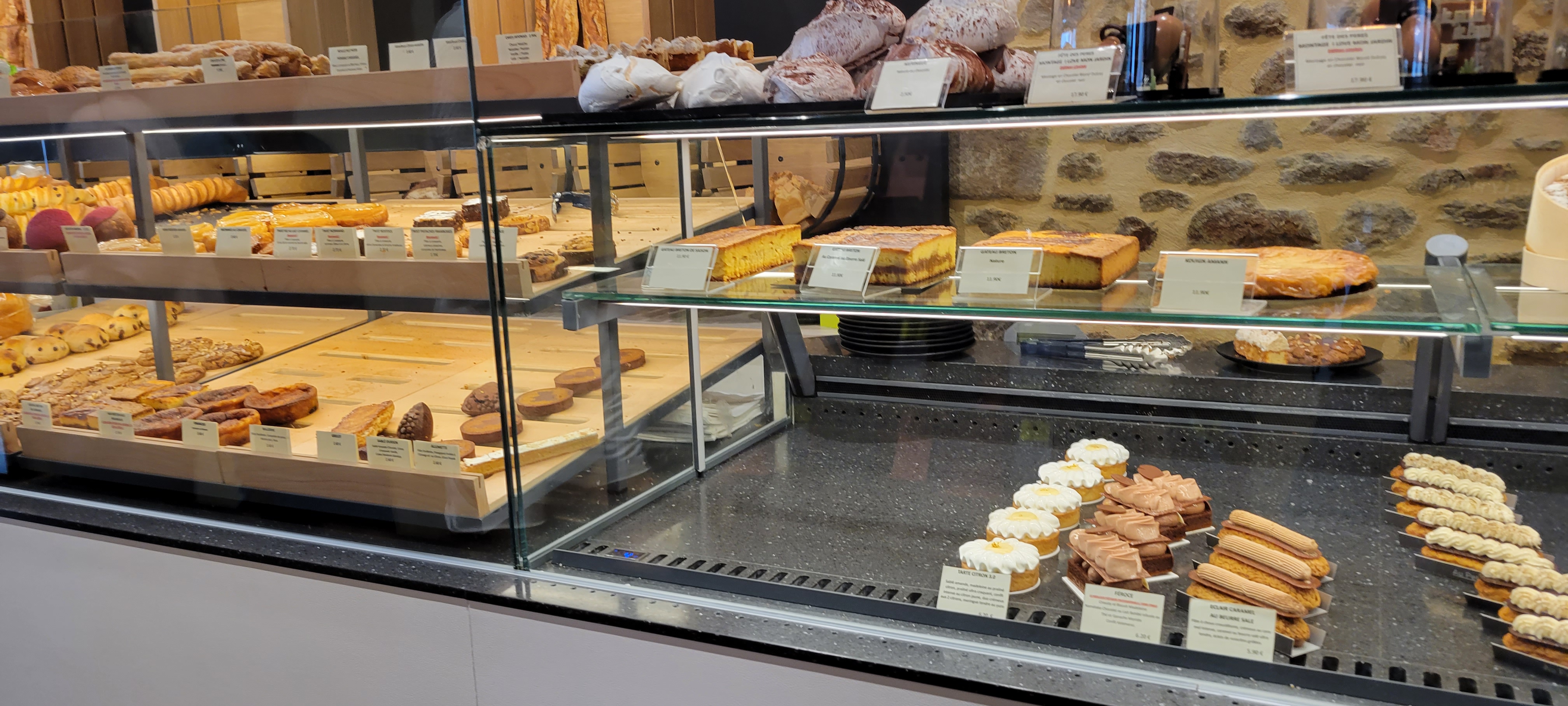 Nous sommes allés spécialement à la boutique à Auray, car nous avions suivit leurs parcours pendant le meilleur pâtissier les professionnels. Super boutique , super vitrine, des gâteaux délicieux nous avons pris le mille feuille breizh et le breizh st ho il me semble ( le gâteau de la finale ) ! Je recommande . Les macarons sont délicieux et le kouin aman parfait ni trop gras ni trop sec . Nous reviendrons avec plaisir avant la fin des vacances ☺️