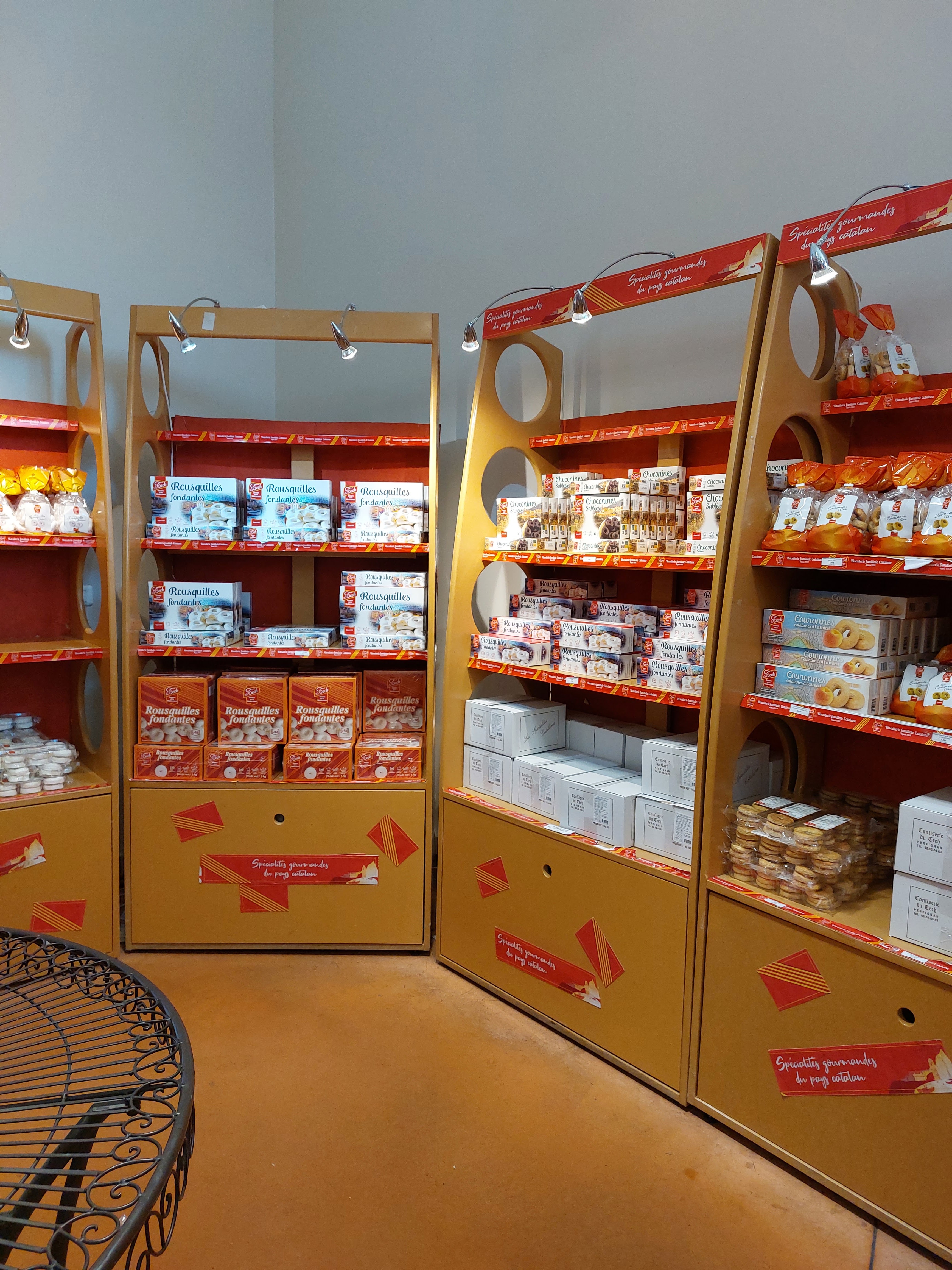Magasin en zone industrielle proposant des produits de la région. Mention spéciale pour des belles réalisations en pâte de fruit. Un peu trop de monde et prix un peu chers ce qui gâche la visite.