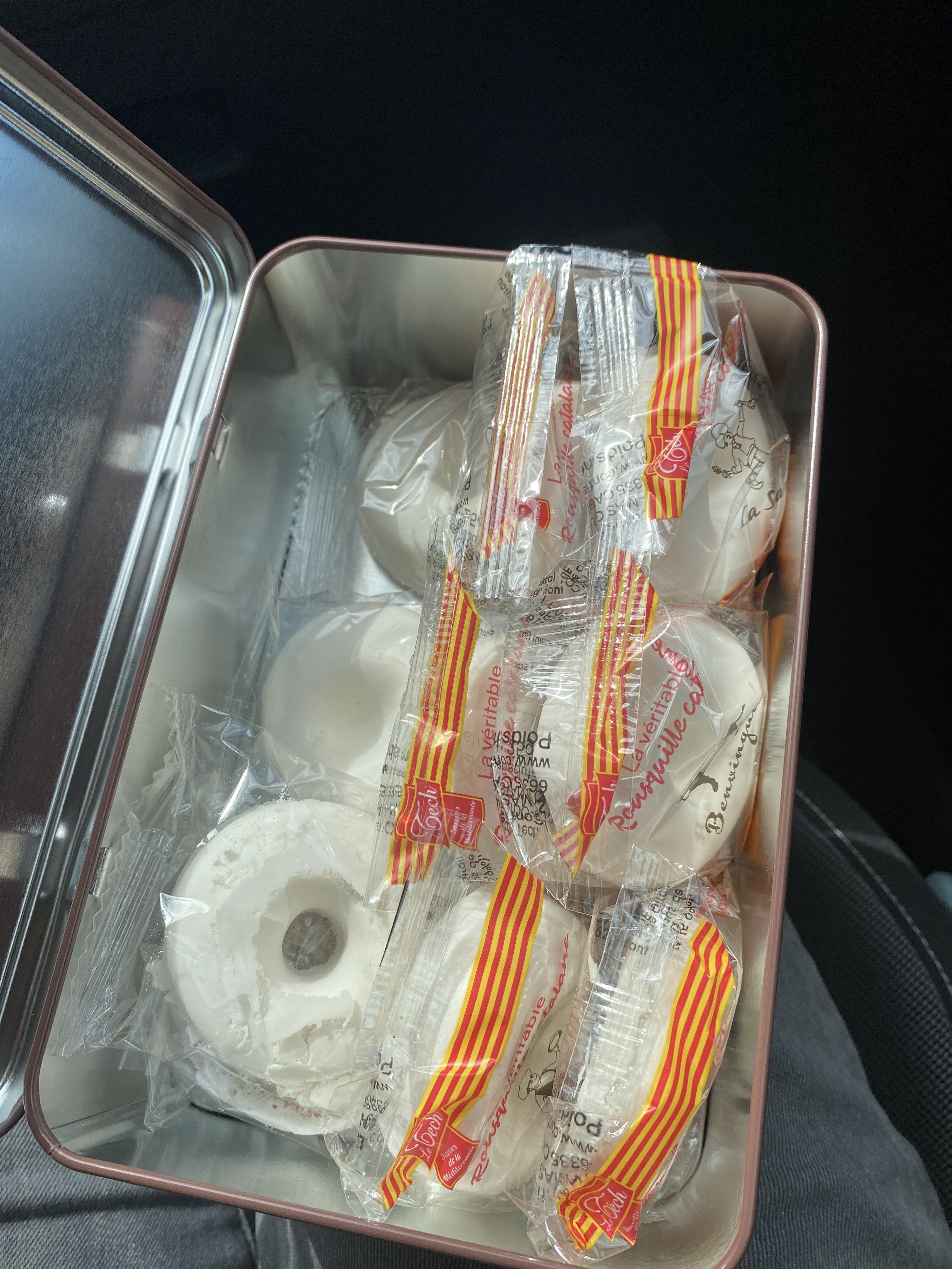 Déçue 😥 pas trouvé les boîtes d'1kg de couronnes à l'anis vin blanc depuis quelques temps et il n'y en avait pas non plus en déclassé..... 🙄 Les boîtes de 180 gr on les trouve dans tous les commerces !!! Que des rousquilles et croquants !!!