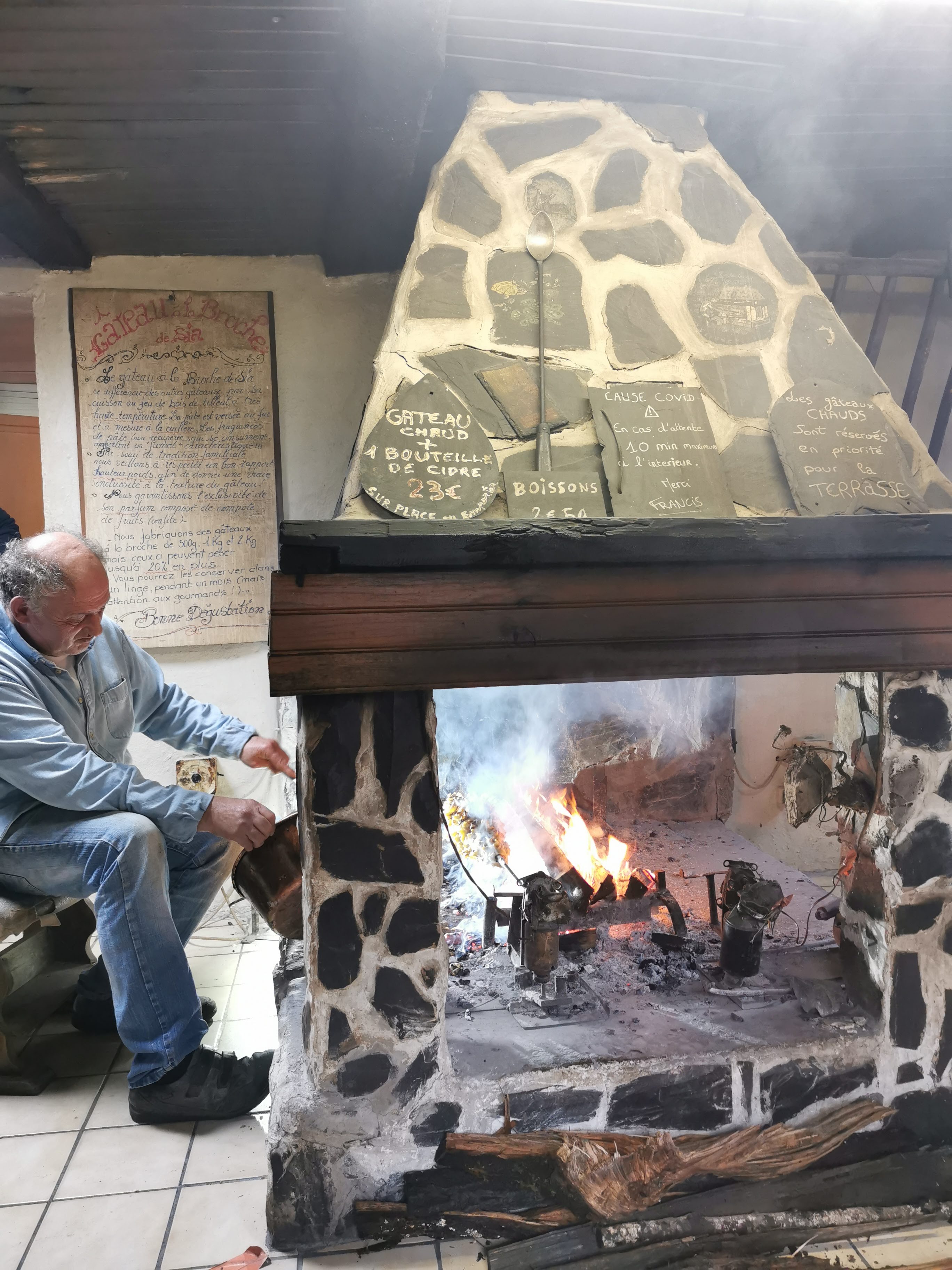 Pittoresque. Ambiance d'une autre époque. On peut voir la cuisson du gâteau dans la fournaise de la pièce 🥵 Le tarif de 20€ est à mon sens vraiment exagéré, mais comme tous les gâteaux à la broche, même ceux vendus en magasin. Donc à en manger un, autant que ce soit celui-là