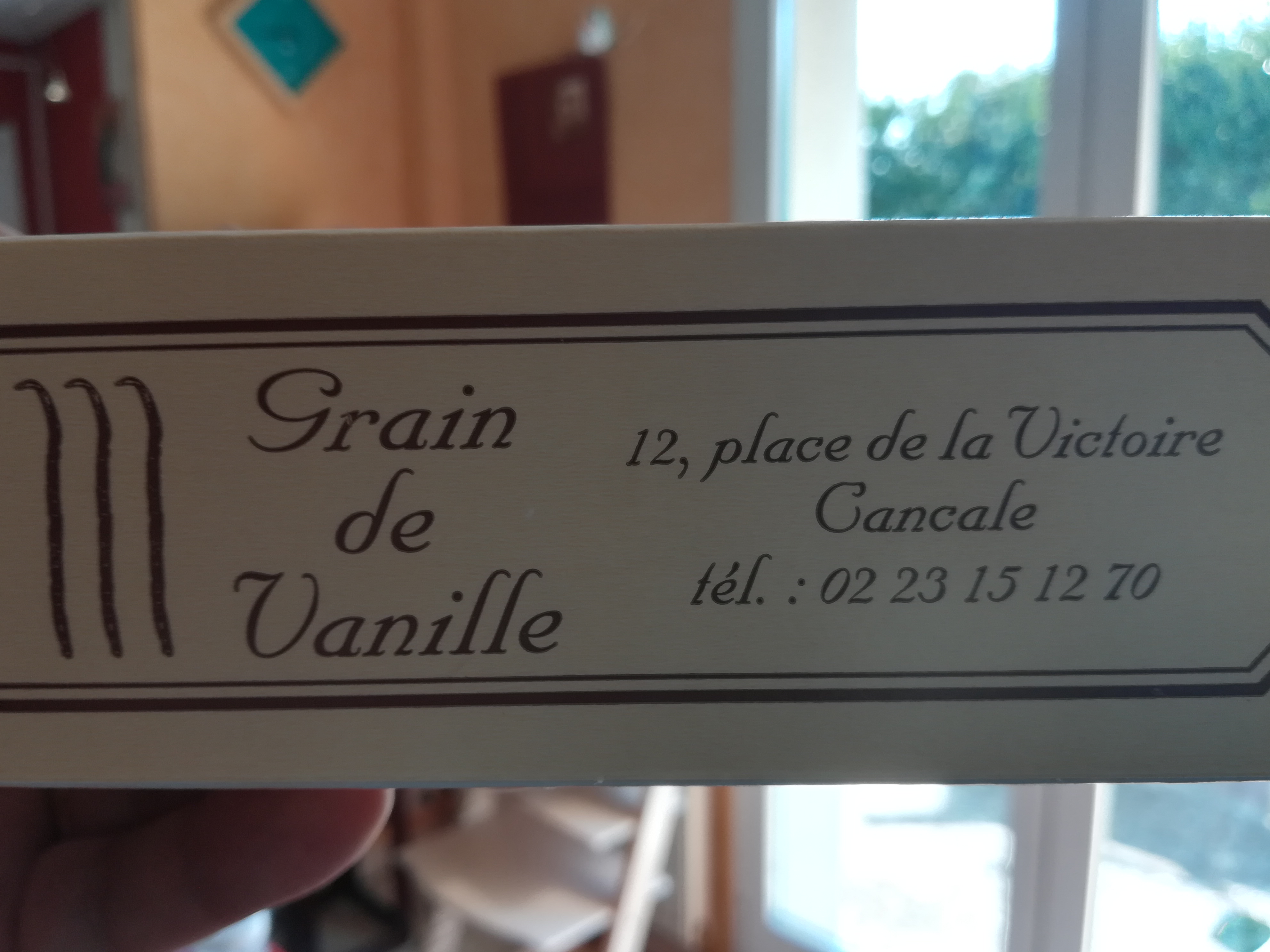 Très bonne pâtisserie ! Le millefeuille un pur délice ! Avis aux amateurs si vous passez par Cancale où y faites une halte. Le pommé avec son petit goût de caramel beurre salé excellent. Le beurre bordier et le beurre madame que l on peut acheter au grain de vanille permet de retrouver des saveurs d enfance ! Bref on ne passe pas devant le grain de vanille on s arrête et l on rentre. Vous ne serez pas déçu. Accueil chaleureux garanti.