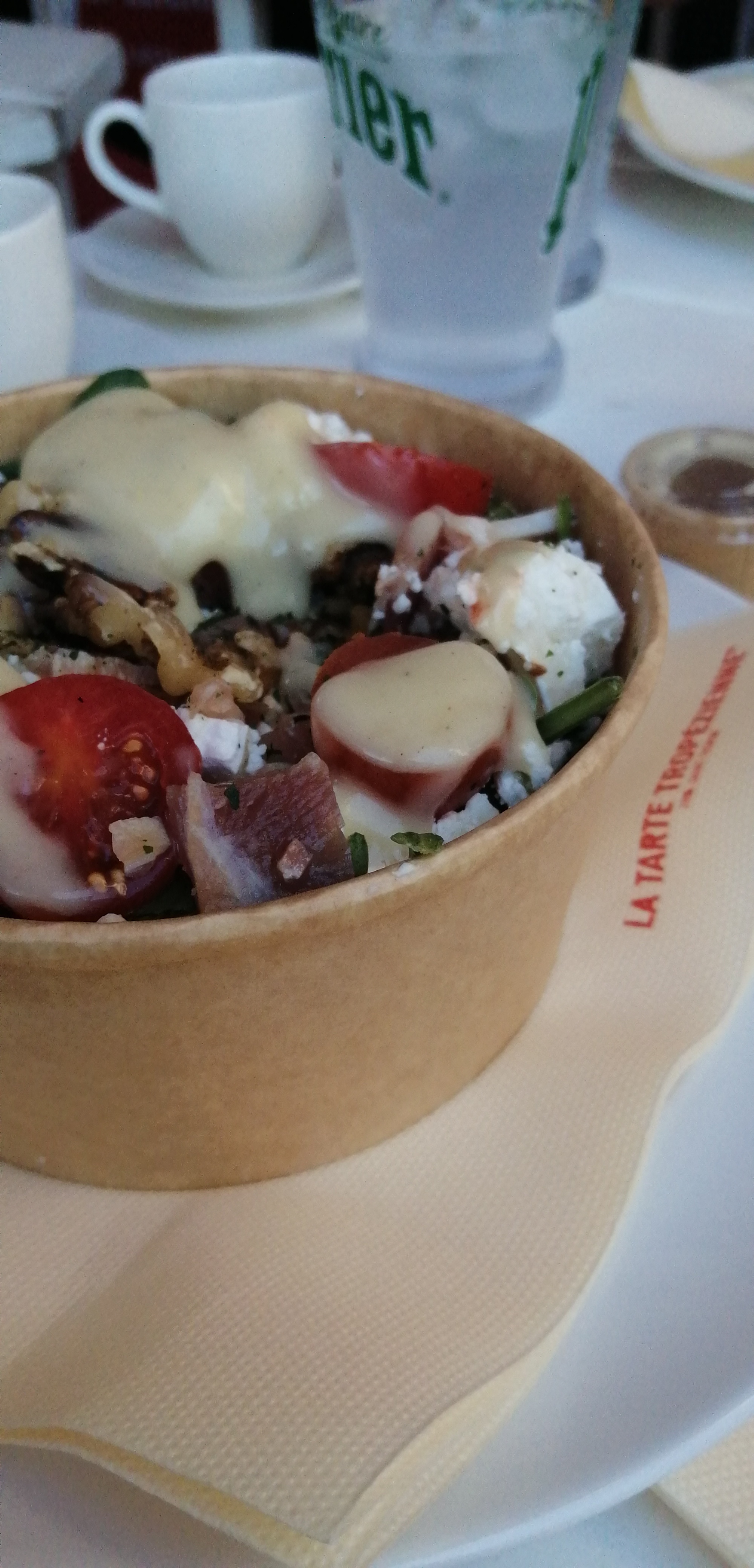 J'ai mangé à La Tarte Tropézienne le 7 janvier une salade César en dessous de tout. Les 3 gambas n'étaient pas cuites, encore congelées! J'ai donc réclamé et on m'a rapporté 3 nouvelles gambas toutes aussi immangeables! J'avais faim car l'essentiel était composé de salade verte! Après réclamation on m'a offert une tartelette aux abricots... Je suis très déçue et ne reviendrai plus!