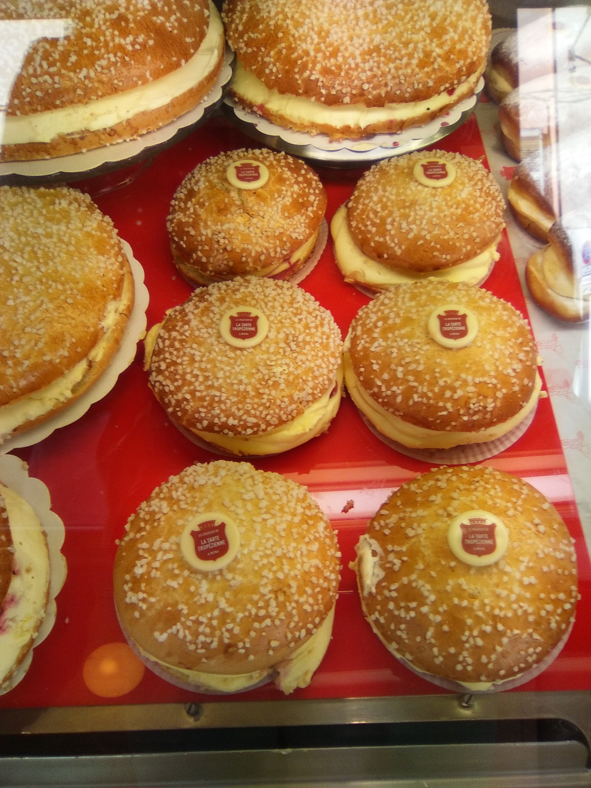 Tarte tropezienne à brioche décevante... merci la fabrication industrielle. La creme reste bonne (ouf). Pour ce qui est du pain: hyper leger et sans gout. bref du pain d'oiseau pas vraiment du pain.