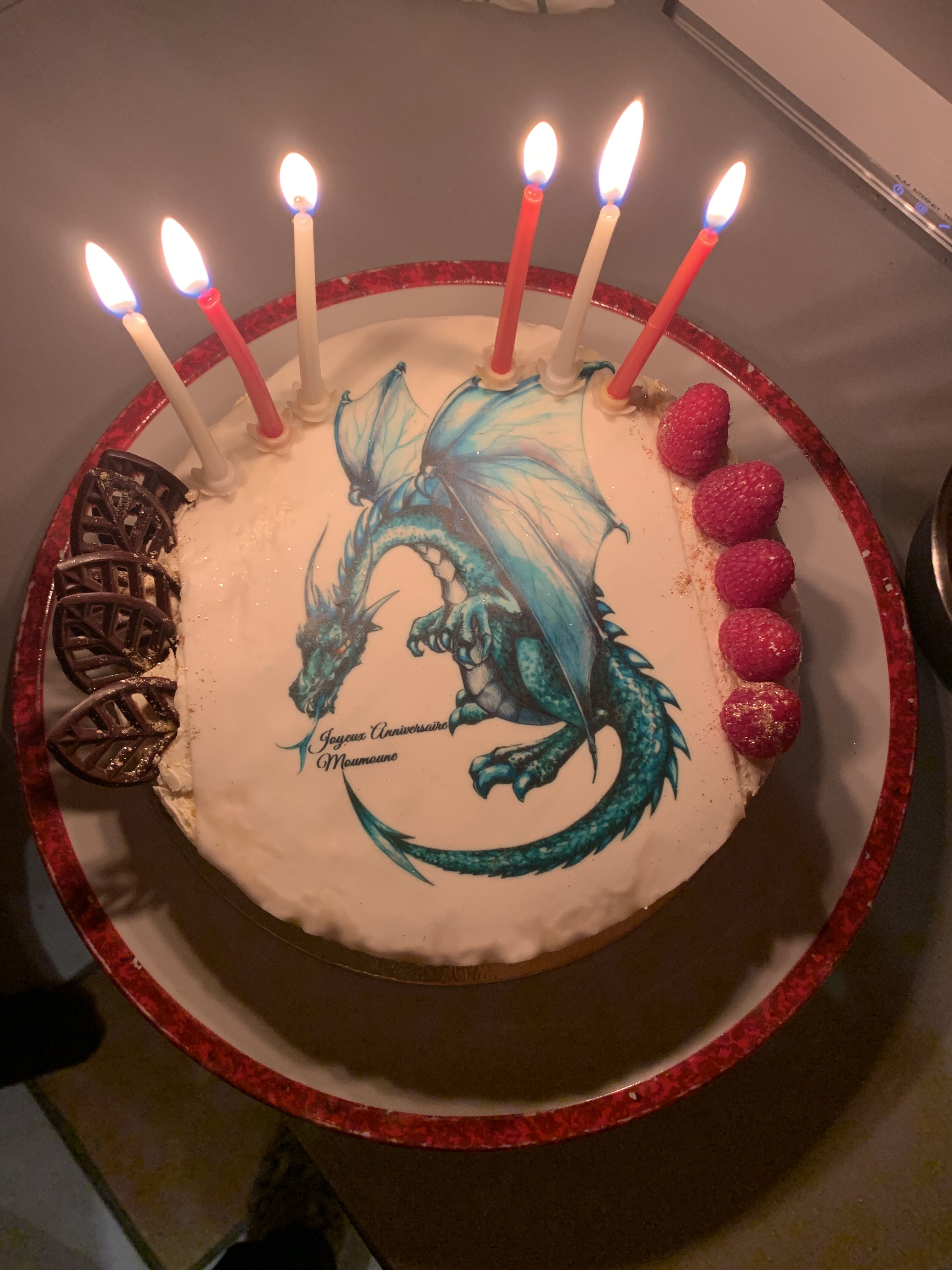 Gateau d anniversaire framboiisier , très beau décor ! Et Excellent !!!!