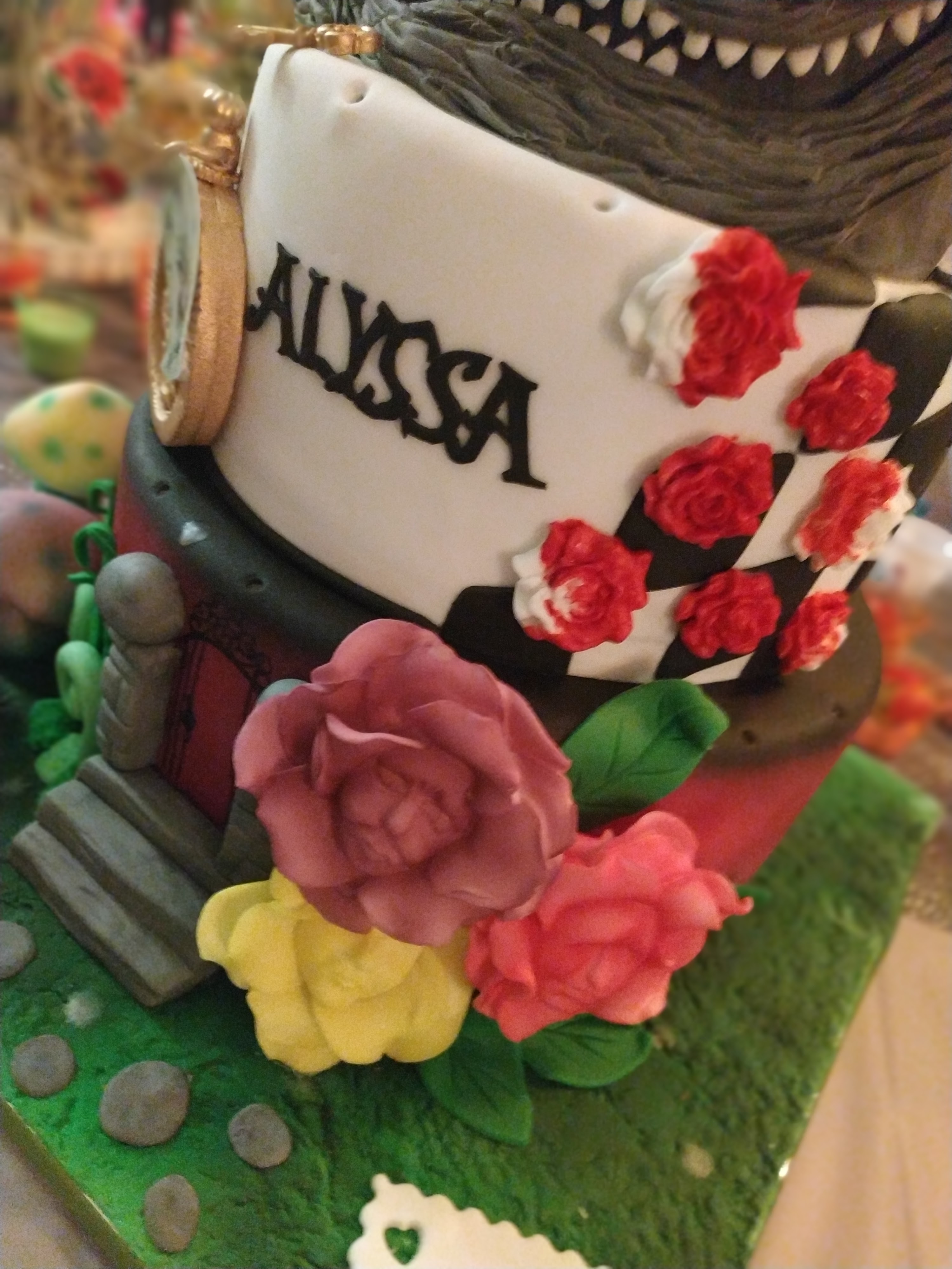 Gâteau d'anniversaire pour ma fille sur le thème d'Alice aux pays des merveilles, autant magnifique que bon... Je recommande cette créatrice de talent.