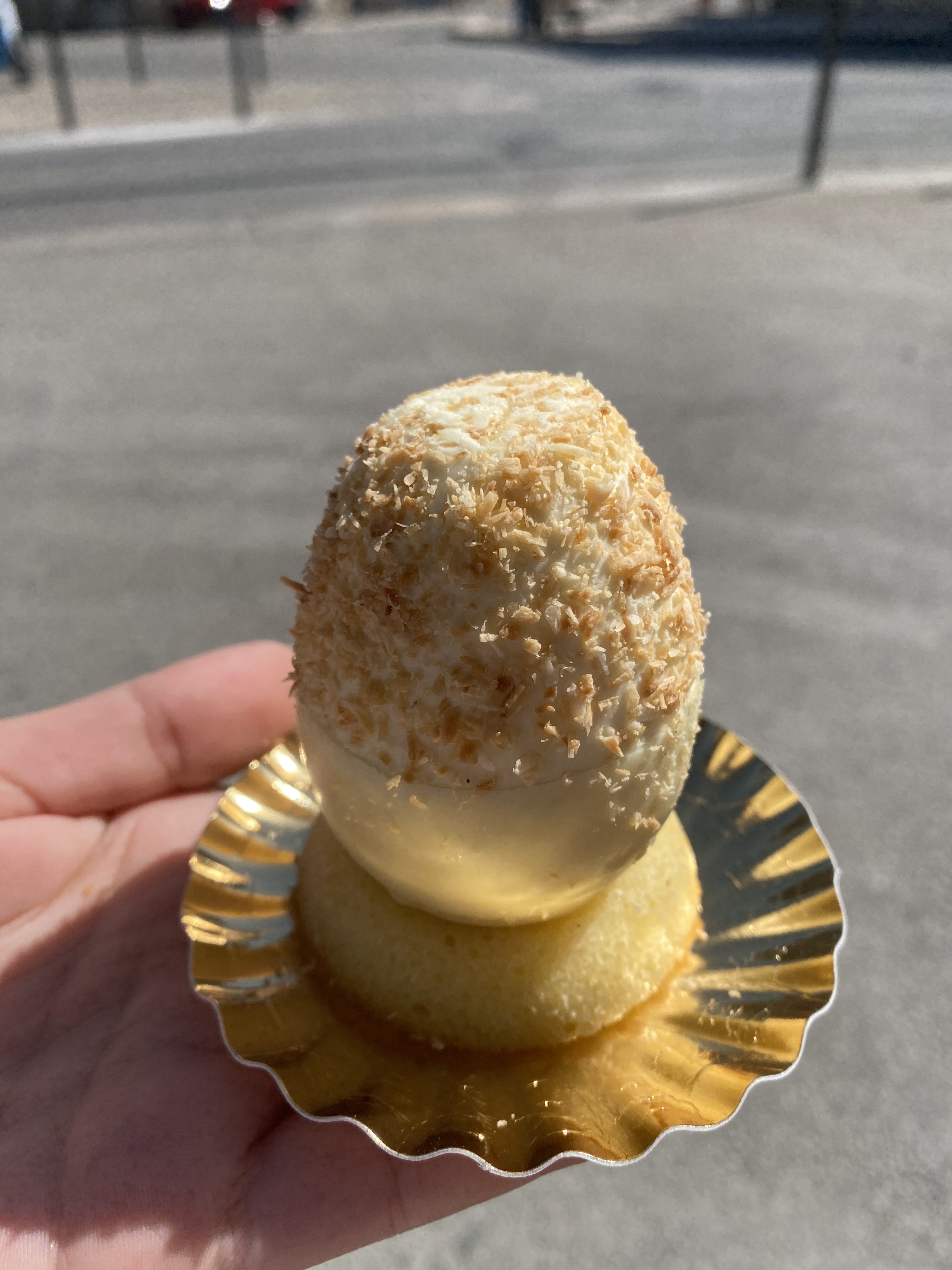 Je ne parlerai que de la pâtisserie signature a savoir L'oeuf ! Celui au citron yuzu et kiwi était très bon, accord entre le chocolat blanc pour les coques, la crème mousse aux citrons et le cœur très agréable de kiwi fruit frais. Exquis! L'accueil était très agréable. Bref ce fut un très bon moment 😋 Je n'ai pas mis 5 étoiles car il faudrait goûter d'autres pâtisseries, ce que j'espère avoir l'occasion de faire prochainement 😉