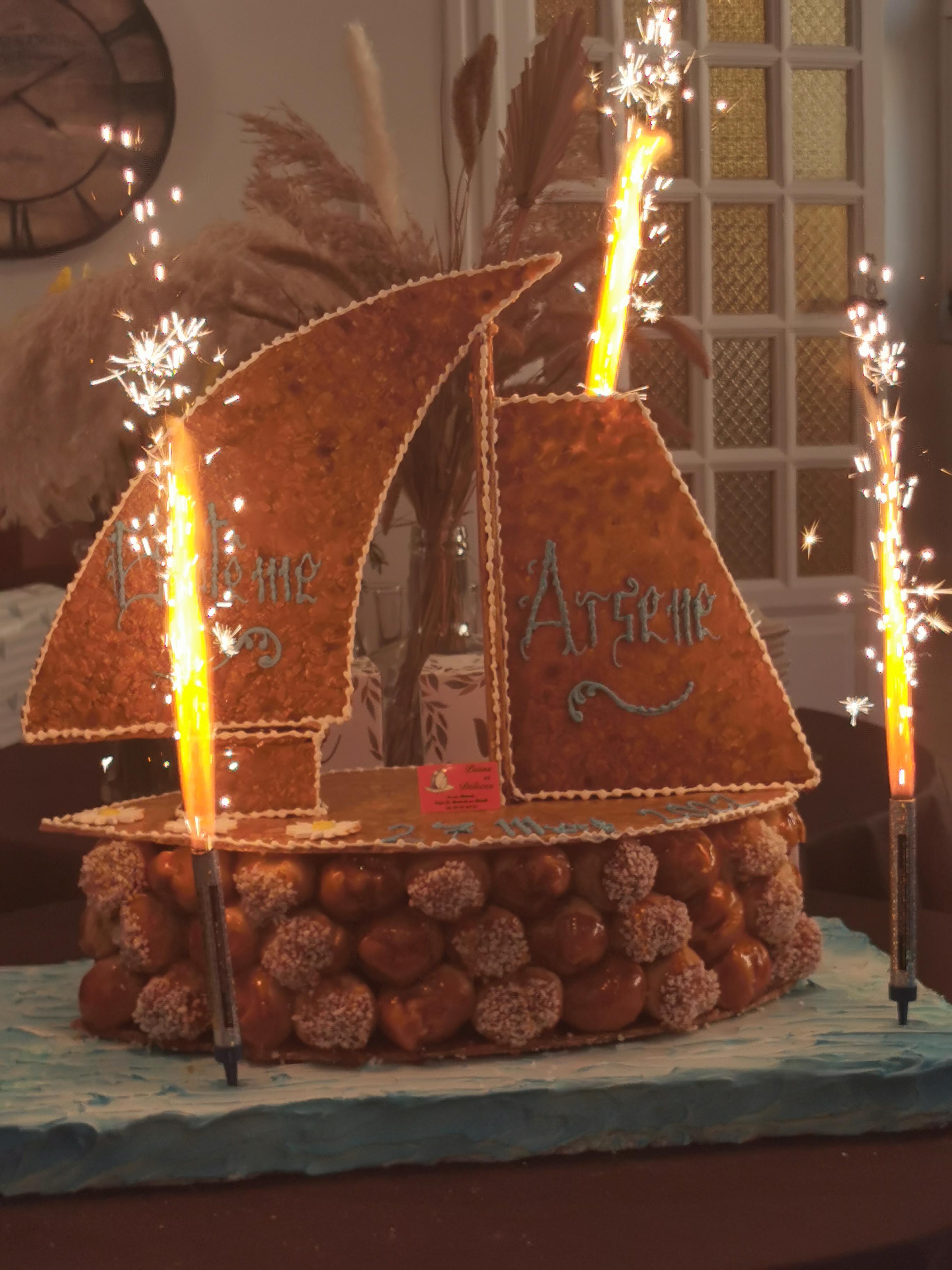 Nous vous avons confié la confection de la pièce montée pour le baptême de notre fils le 27 Mars dernier et nous n'avons pas regretté !! Tout le monde a adoré et nous a même demandé d'où pouvait elle bien venir 😉 elle était bien évidemment très belle mais également très bonne avec un mix de choux praliné et vanille ! Encore merci à vous et certainement à bientôt ! 😊