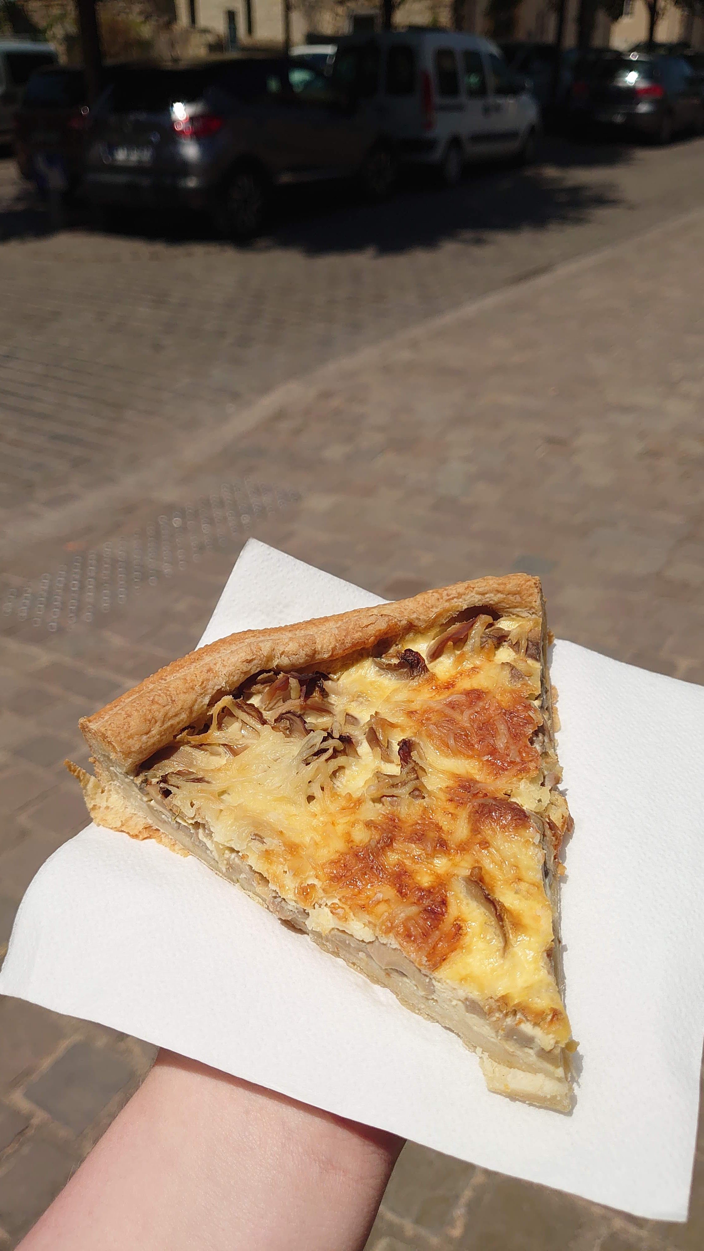 Malheureusement décevant. Nous avons eu 4 quiches qui étaient complètement trop chères. On nous a recommandé une petite salade, composée finalement de 2 à 3 feuilles de laitue. Nous les avons mangés sur place et du coup, tout cela a coûté deux fois plus cher. Les quiches étaient fades et la pâte extrêmement molle (collante). Bref : piège à touristes.
