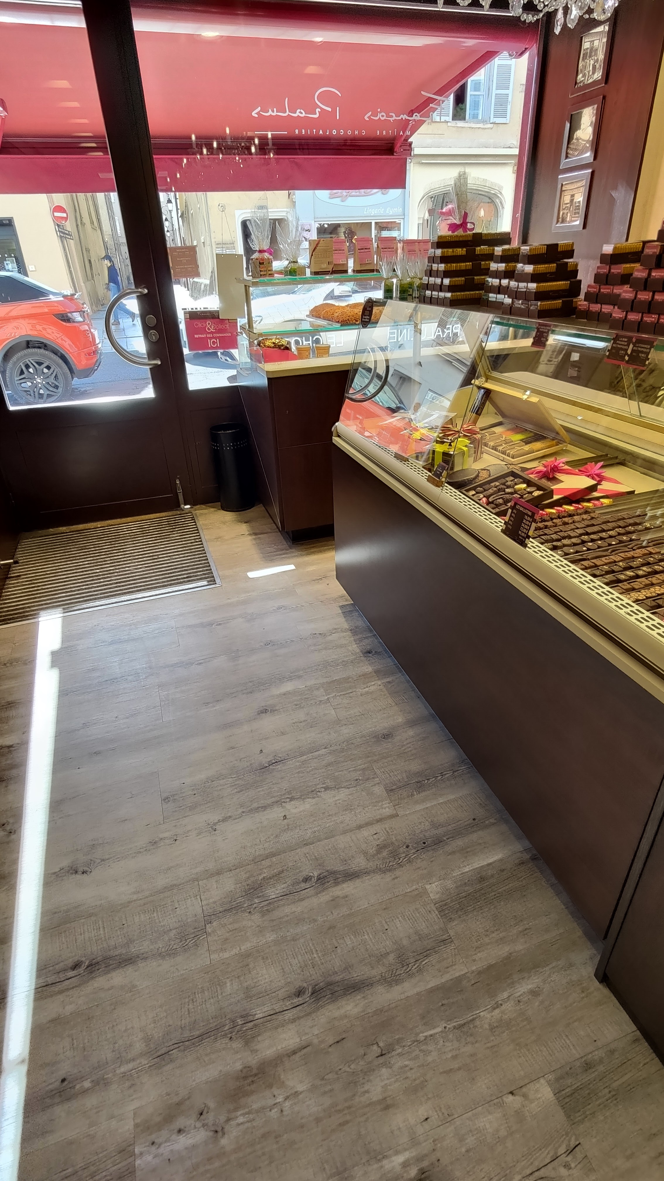 Je ne passe pas souvent car je n'habite pas dans le coin mais j'ai toujours gardé un bon souvenir de cette chocolaterie, niveau qualité et accueil, mais ce matin ça m'a fait un peu drôle de voir ce vendeur avachi avec son téléphone au comptoir... il faudrait peut être prévoir un endroit pour les pauses ?