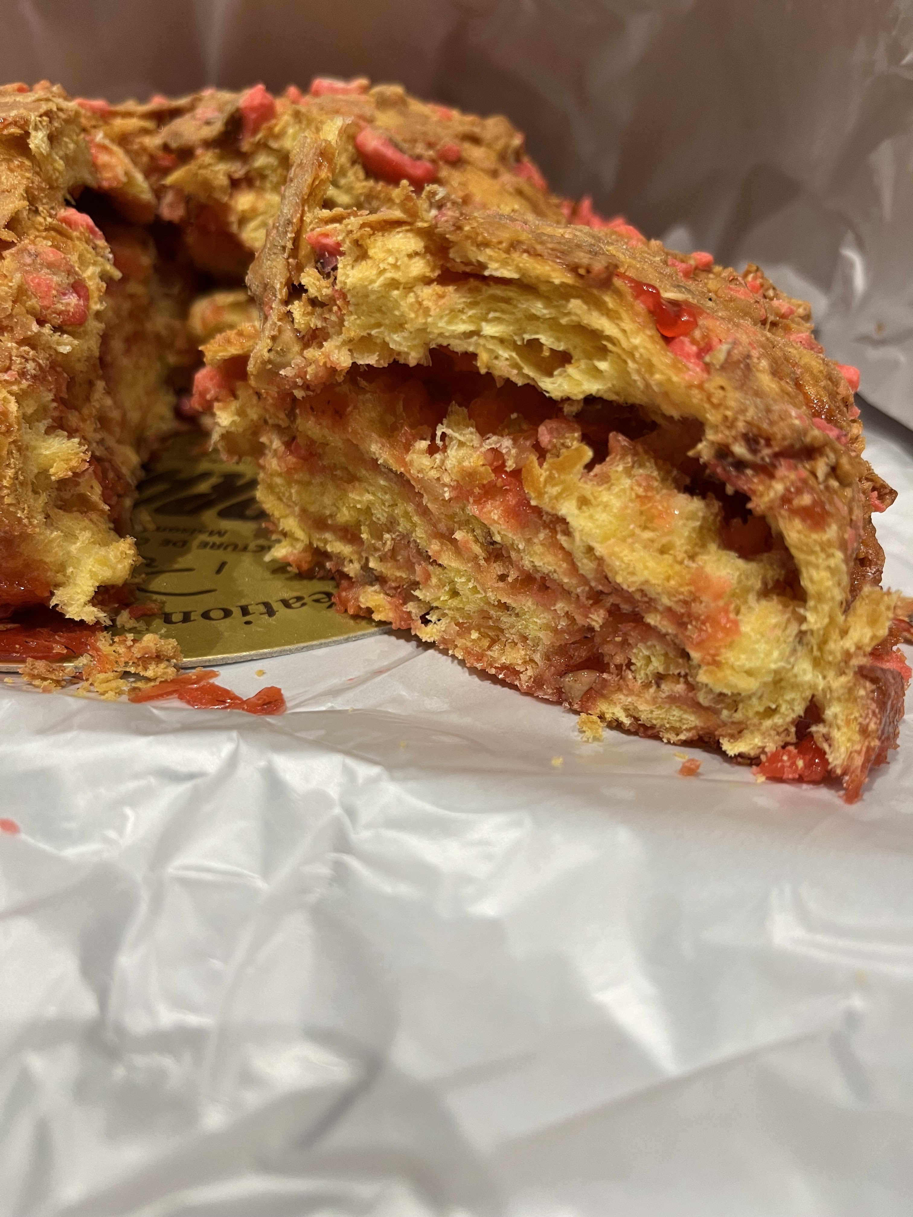 Je suis nouvelle dans la ville et le passage chez François Pralus était obligatoire. Délicieuse brioche à la praline. Elle m’a tenu 3 jours !