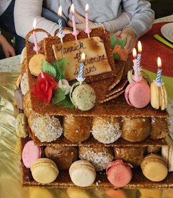 Très satisfaite de la réalisation du pâtissier pour fêter les 40 ans de mes jumeaux. Les choux au chocolat ou à la crème pâtissière ont fortement été appréciés ainsi que les différents macarons qui étaient délicieux. De plus la nougatine était bien tendre.... Remarque d'un de mes petit fils : Et bien dis donc mamy c'est la première fois que je vois un gâteau d'anniversaire aussi joli !