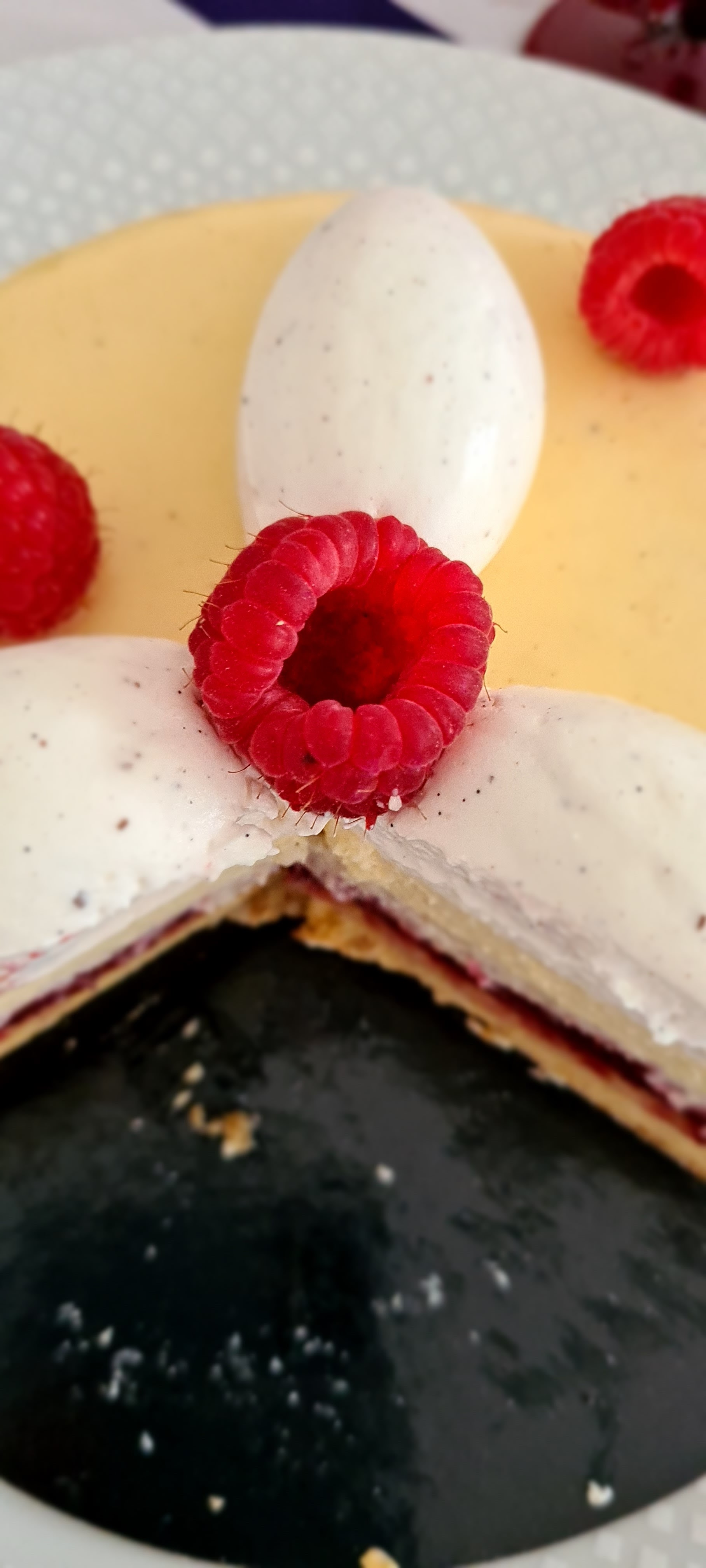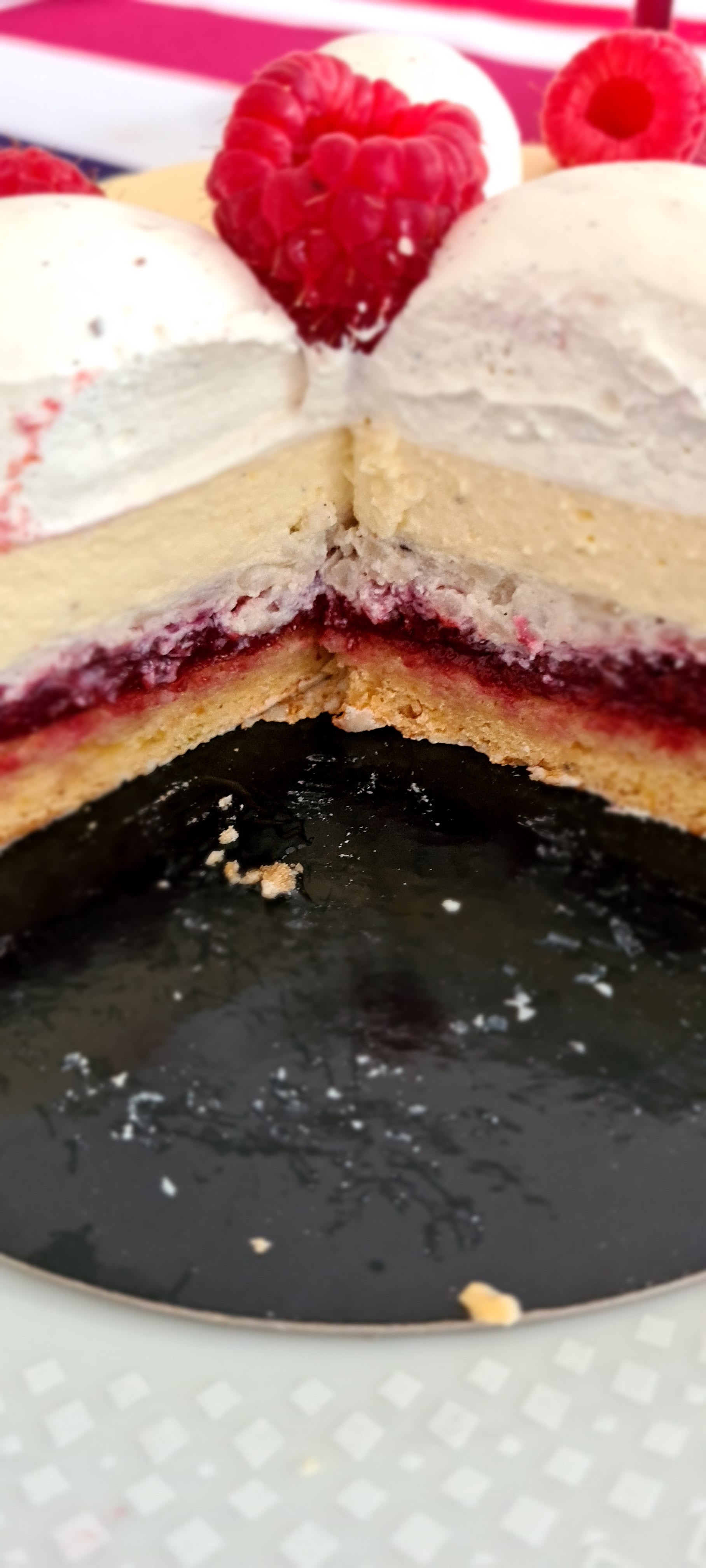 Très bon gâteau ! Au chocolat, framboise, vanille. 4 pers. 22 euros