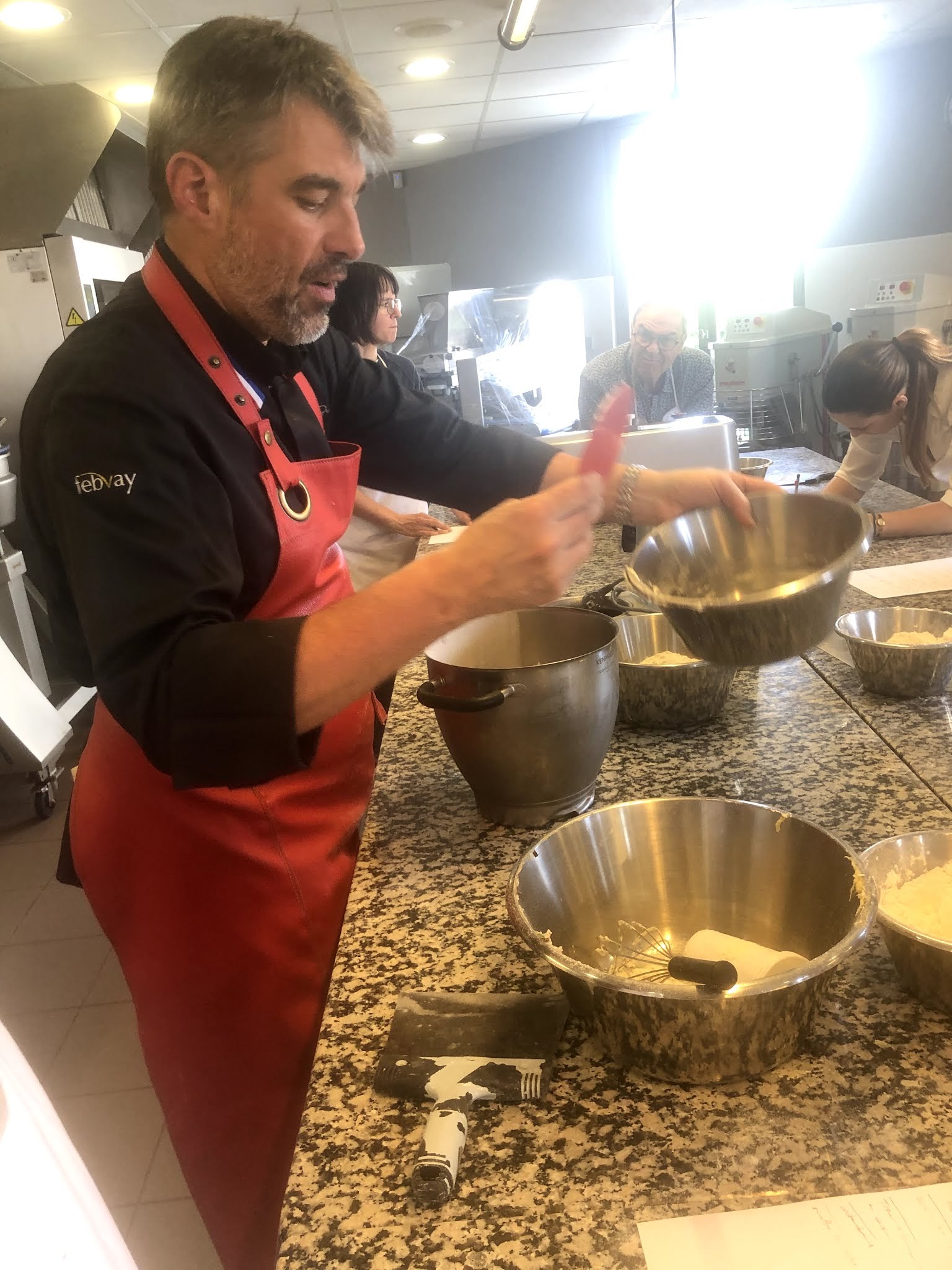 J’ai participé à un cours de pâtisserie special Pâques Une équipe de choc Très gentil Pleins d’humour Merci au Chef Nicolas Bernadé pour sa patience Et de nous faire partager son savoir