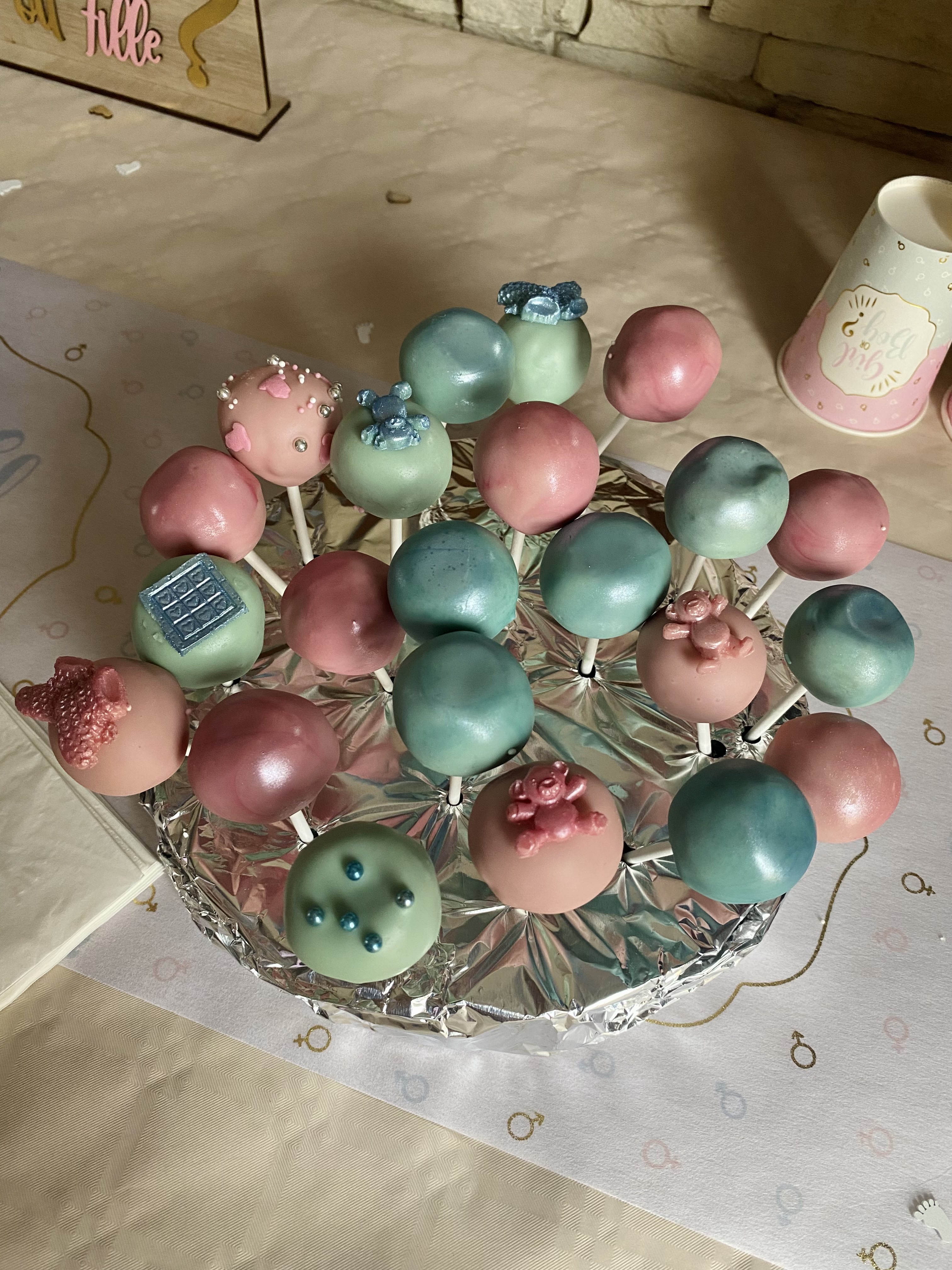 De jolis popcakes vraiment délicieux ! Un régal pour les yeux et les papilles ! Tous les invités de la gender reveal ont été conquis ! Je recommande vivement ! Je vous remercie encore pour votre travail et votre gentillesse ! ☺️